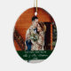 Elegant Script Our First Christmas Wedding Photo Hunter Green Ornament with Snowflakes back