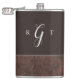 Elegant Script Personalized Monogram Brown Leather Hip Flask