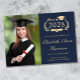 Elegant Script Photo Blue Gold College Graduation Announcement