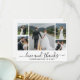 Modern, Elegant Script Wedding 5 Photo Collage Thank You Card in Black and White. Minimalist, stylish wedding card template featuring five (5) grid photo collage and a "Love and thanks" hand lettering script calligraphy swash tail font. Personalize your name and thank you message. If You need help or matching item, please contact to designer!