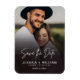This elegant gradient photo save-the-date wedding magnetic card features crisp white script font that says "Save the Date," along with space for your names, wedding date, and location. To customize this design, simply click on "Personalize This Design," enter your information, and Zazzle will take care of the rest.