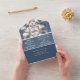 If wanting to purchase in bulk, all recipient address lines need to be deleted and they may be hand printed. Contemporary Blue Background, White Lettering, Pink, White Shell Textured Daisy or Lei Flower Design will set the theme for your special day perfectly. Perfect for Hawaiian, Beach Theme or any spring Summer wedding. Name text is editable. Look for matching stationary, party, and gift items.