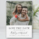 Elegant Script Photo Modern Minimalist Wedding Save The Date Invitation Card. Let your family, friends and colleagues know that you have set a date for your wedding celebration with this elegant, stylish and modern wedding save the date invitation card. All the texts are pre-arranged for you to personalize easily and quickly with your own details.