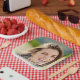 Elegant graduation party paper plates featuring the graduate's photo overlayed with "Graduate" in a chic script and their name and class year in simple modern typography.