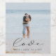 Personalized photo wine label set with your custom photo and elegant script "love" coupled with your own monograms and date in sans serif font