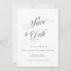 This elegant invitation combines an ornate script rendering of Save the Date along with a traditional style font. Easy to personalize with your wedding details and add a sweet photo to the back. Beautiful!