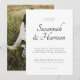 A simple handwritten script modern minimalist script typography wedding, featuring your wedding photo on the back. Replace the sample photo with your own posed wedding photo. Use the simple design tool to change your font or type colour. Available in print, as a digital download, or both.