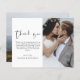 Express votre gratitude sincère dans le style intemporel avec ce Carte de remerciements Elegant Script Photo Mariage. Avec une calligraphie raffinée, une mise en page complète des photos et des éléments de design minimaliste, cette carte est la façon parfaite de remercier vos invités tout en présentant un moment chéri de votre grand jour. Idéal pour des thèmes mariages modernes, romantiques ou classiques, il est entièrement personnalisable avec votre message et votre photo.