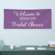 Cute, elegant script purple bridal shower welcome banner, personalized with the name of the bride-to-be. The background colour of this banner is customizable with Zazzle's design tool, so whatever your bridal shower colour theme, you can create your banner to match. Contact me for help with customization or to request additional products for your suite.