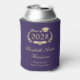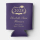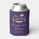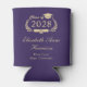 Toast the grad at their graduation party with this elegant purple can cooler featuring "Class of" in a gold illustration of laurel wreath, a gold grad cap and diploma, the graduate's name in a stylish gold script, and their school name in classic gold serif typography.