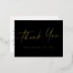 Elegant black thank you postcard featuring the text "thank you" across the card and custom text below in gold, silver or rose gold foil. You can change the background colour with the design tool.