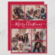Elegant Script Red 5 Photo Collage Christmas Holiday Card
