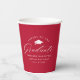 Elegant graduation paper cups featuring a graduation cap with the phrase "Cheers to the Graduate" in a white calligraphy script on a red background. Personalize the modern graduation paper cups with the graduate's name, school name, and graduation year. The design repeats on the back. The simple graduation cups are perfect to use for your high school or college graduation party.