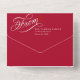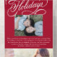 This unique holiday photo card design features a festive red background with a beautiful calligraphy script greeting in white with two photos. The inside of the card accommodates text and two photos, one large and one small horizontal photos. On the outside of the card is your return address. The photo is torn away and can be kept as a keepsake! Also, there is need to order envelopes - the outside of the card serves as an envelope!
