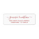 Étiquette de l'adresse de retour du mariage. Police calligraphie moderne et élégante avec swashes mariage l'étiquette d'adresse de retour en rouge. Cette étiquette d'adresse de retour de script simple comporte des espaces réservés pour le nom et l'adresse du couple dans une police de caractères serif classique. Étiquette de adresse élégant pour votre fiançailles et toute votre correspondance mariage. Utilisez le modèle et faites une brise dans les enveloppes d'adressage. © y.BEE MARIAGES #ZazzleMade #redretournaddress label #weddingretnaddress