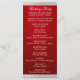 This romantic design features an elegant crimson red background with ribbon borders, wedding ceremony details & thank you on the front with wedding party members on the back. Available in several colours for your wedding theme. (Ribbon is simulated in the artwork). Available in several colours for your wedding theme colours. (Ribbon is simulated in the artwork). Designed to coordinate with the "Two Shall Become One - Silver & Gold" Wedding Collection. To change details, click «Personalize». To move the text or change the text size, font, or colour click «Click to customize further»