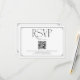 This elegant RSVP card features a sophisticated black and white design, perfect for any modern wedding. The prominent 'RSVP' in a classic script font is complemented by a clear QR code, making it easy for guests to access your wedding website and respond. Below the QR code, you'll find a dedicated space for your wedding website URL and a heartfelt closing message. It's a chic and efficient way to gather your RSVPs while adding a touch of class to your wedding stationery. This design ensures a seamless RSVP process for your guests.