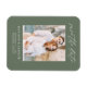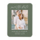 Announce your upcoming nuptials in style with our Elegant Script photo save the date magnet. The elegant save the date magnet features "save the date" in a white modern calligraphy script with your engagement photo displayed below against a sage green background. Personalize the simple save the date magnet by adding your names, wedding date, and wedding location.