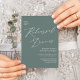 Elegant Script Sage Green Minimalist QR Code Rehearsal Dinner Invitation Card. Celebrate your special day with this elegant and beautiful wedding invitation card to beautify your special occasion. All the texts are pre-arranged for you to personalize easily and quickly with your own details. If you need further customization or matching items, please let us know – we would love to help.