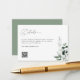sage green watercolor greenery elegant script wedding details card. You can personalize the details and colours.