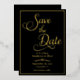 Announce your special day in style with this luxurious black and gold foil Save the Date invitation. Featuring "Save the Date" in elegant calligraphy script, this chic design is easily customizable with your names, wedding date, and location. Perfect for couples seeking a modern yet glamourous way to share their big news, this Save the Date card ensures your announcement is as unforgettable as the day itself.