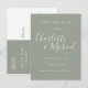 Featuring signature style names, this elegant silver sage save the date card can be personalized with your special wedding day information in chic white lettering. You can customize the background to your wedding colour theme. Designed by Thisisnotme©