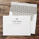 Personalize your mail with custom envelopes! This stylish design blends script lettering with calligraphy flourishes, a traditional serif font, and a decorative scroll pattern. Personalize the template with your name and return address. Perfect for business and personal stationery, birthday invitations, wedding celebrations, save the date cards, bridal showers, a rehearsal dinner, and more. Pattern is printed directly onto the inside of the envelope. Colours: dark grey and ecru white. Fits a 5" x 7" card.