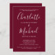 Featuring signature style names, this elegant, modern simple engagement party invitation can be personalized with your information in chic white lettering on a burgundy background. Designed by Thisisnotme©