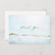 Un mariage simple, élégant, moderne carte de remerciements en écriture avec une aquarelle peinte arrière - plan d'un paysage côtier sauvage de plage dans aqua turquoise. Un choix élégant pour un mariage à la plage, un mariage de destination ou un mariage de plage.