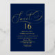 These chic and very stylish sweet 16 birthday party invitations features elegant real foil pressed typography wording on a simple navy blue background. Easily personalize the design with your own wording and find matching party items at www.zazzle.com/invitation_republic.