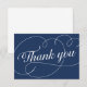An elegant and romantic navy blue thank you card with a beautiful vintage-style script font.