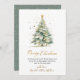 Modern Elegant Calligraphy Script Christmas Tree Non Photo Christmas Cards. This festive simple minimalist Christmas Holiday cards features a watercolor christmas tree with decoration gold balls and confetti and a „Merry Christmas” greeting text which is written in a nice hand lettered font type in gold and white. On the reverse side golden glitter snow or sparkling gold confetti on dusty green background. This festive Custom Personalized Christmas Cards are a great way to remind loved ones that you're thinking of them this Winter Holiday Season.