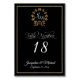 "Elegant Script Typography Black Gold Wreath Table Number."  Personalized with your monograms, names and wedding (or other event) date, these are sophisticated and elegant table number cards.  Art graphically designed by internationally licensed artist and designer, Audrey Jeanne Roberts, copyright.