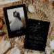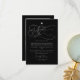Modern and elegant wedding thank you card featuring a script text that says "thank you" with a heart. You can add a picture on the back with the couple's initials. Black background.