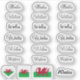 Countour Stickers: Elegant script Name set - Wales & Welsh Flag - custom name in 6 x 3 different handwriting personal fonts. Cool black handwritten stickers allows you to mark your items, put name on with personal touch / name can be costumised