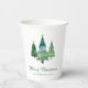 Elegant Script Watercolor Christmas Trees Paper Cups