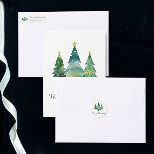 Elegant Script Watercolor Christmas TreesDesigned by Uneza K