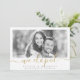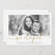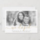 Modern script "we eloped" in gold colour, with couple's photo, simple and elegant. Great photo wedding announcement cards.