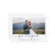 Modern script "we eloped" in blue colour, with couple's photo, simple and elegant. Great photo wedding announcement cards.