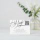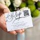 Simple trendy romantic calligraphy script budget affordable (MINI SIZE) black and white wedding online response RSVP enclosure card with a classy elegant look and your automatically generated QR CODE. A simple way to rsvp to your wedding invitation.