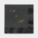 Gold Foil text. Couple Initials.. Elegant black wedding coined cocktail napkin. Glam. Script. Wedding bar napkins.