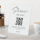 Elegant Script Wedding Photo Share QR code Pedestal Sign