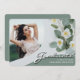 A unique custom photo graduation announcement card, featuring design elements of elegant handwritten style script with modern text. The graduates photo is enhanced by beautiful white and yellow flowers on a stylish sage green background. The back of the card offers personalized text spaces for information about the graduation and future journey. You can easily customize the primary and text colours on the back of the card to suit your needs. To see more items like this, visit my store here at "www.Zazzle.com/LakeViewCardCo". Thanks