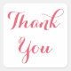 Custom, personalized, elegant typography, white and pink, script thank you square sticker. An elegant thank you sticker for sealing your party favours for wedding, anniversary celebrations, receptions, ceremonies, birthday, bridal shower, baby shower, holidays, or any other special occasion.