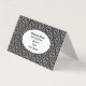 This fold over standing business card has an elegant black and white damask design with fancy scrolls on the outside and a classic white inside. There is a white oval frame on the outside front and back for you to customize your business details. Customize all your information on the front, back, and inside with the templates.