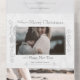 This unique and classic holiday design features faux sculpted effect holly and ornamental dividers on elegant white marble with landscape-oriented photo templates and editable text fields.