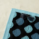 Add some elegance to your beach towel collection. Seashells in blue on contrasting black with a blue border.