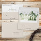 Watercolor landscape painting of trees, flying birds and montains decorating the inside of the envelope. Tranquil green colours of a serene nature scenery. Add bride and groom name and return address. On front write guest name and address.