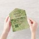 Introducing our lucky green four leaf clover on a vintage style green/chartreuse wedding invitation featuring a subtle and soft botanical background with a rich dark green text. This invitation is perfect for couples seeking a timeless botanical aesthetic which has a touch of "Luck of the Irish" or Celtic flavour for their special day. Customize the text, include a QR code, and add your website and email for a simple yet elegant all-in-one wedding invitation. Perfect for the style-conscious couple seeking a unique and functional invitation design.