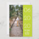 Elegant Side Swept Photo Save the Date Announcement with a simple and modern right-justified rectangle design in lime punch green. Add a photo and your wedding details to customize. Background colour on back side of invite may be changed to complement the photo or to add your wedding colour.